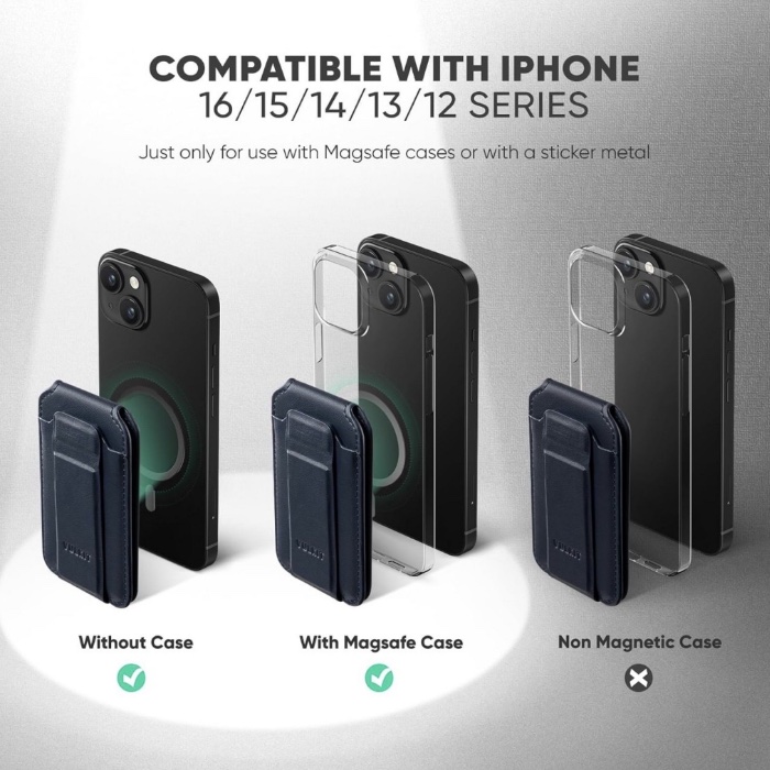 • Compacta y segura: imanes fuertes que mantienen la cartera firme en tu teléfono o lista para llevar en mano.